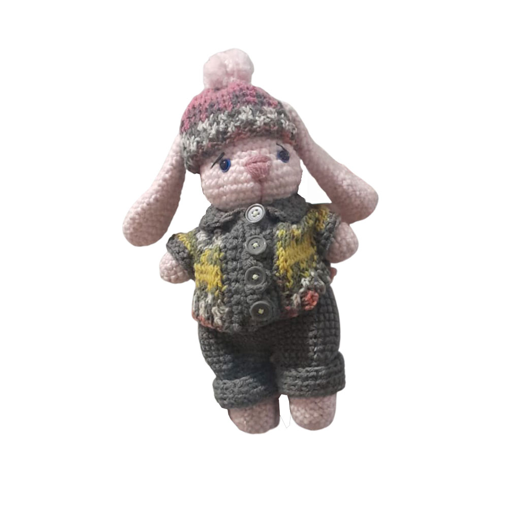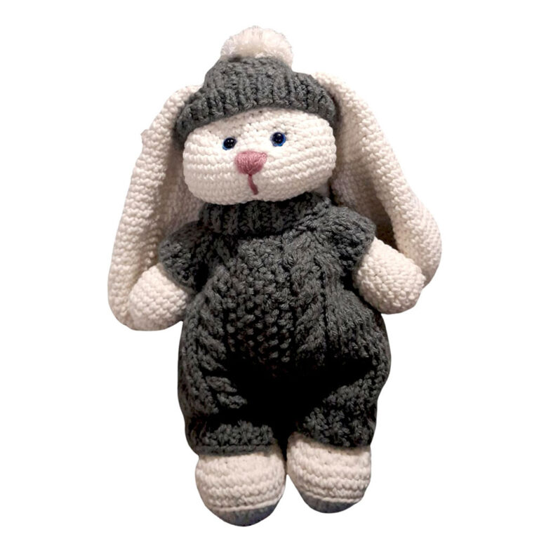 בובת ארנב סרוגה בעבודת יד מצמר איכותי, בעיצוב רך ונעים למגע. שילוב מדויק של צבעים רגועים וגימור מוקפד יוצר מראה חמים, רגשי ומלא אופי. הפרטים הקטנים, מההבעה העדינה ועד הטקסטורה האחידה, משקפים עבודה מקצועית ותשומת לב גבוהה. פריט דקורטיבי ומחבק כאחד, המתאים לחדרי ילדים, כמתנה ייחודית או כאלמנט עיצובי עם נוכחות שקטה ורוחניות עדינה.