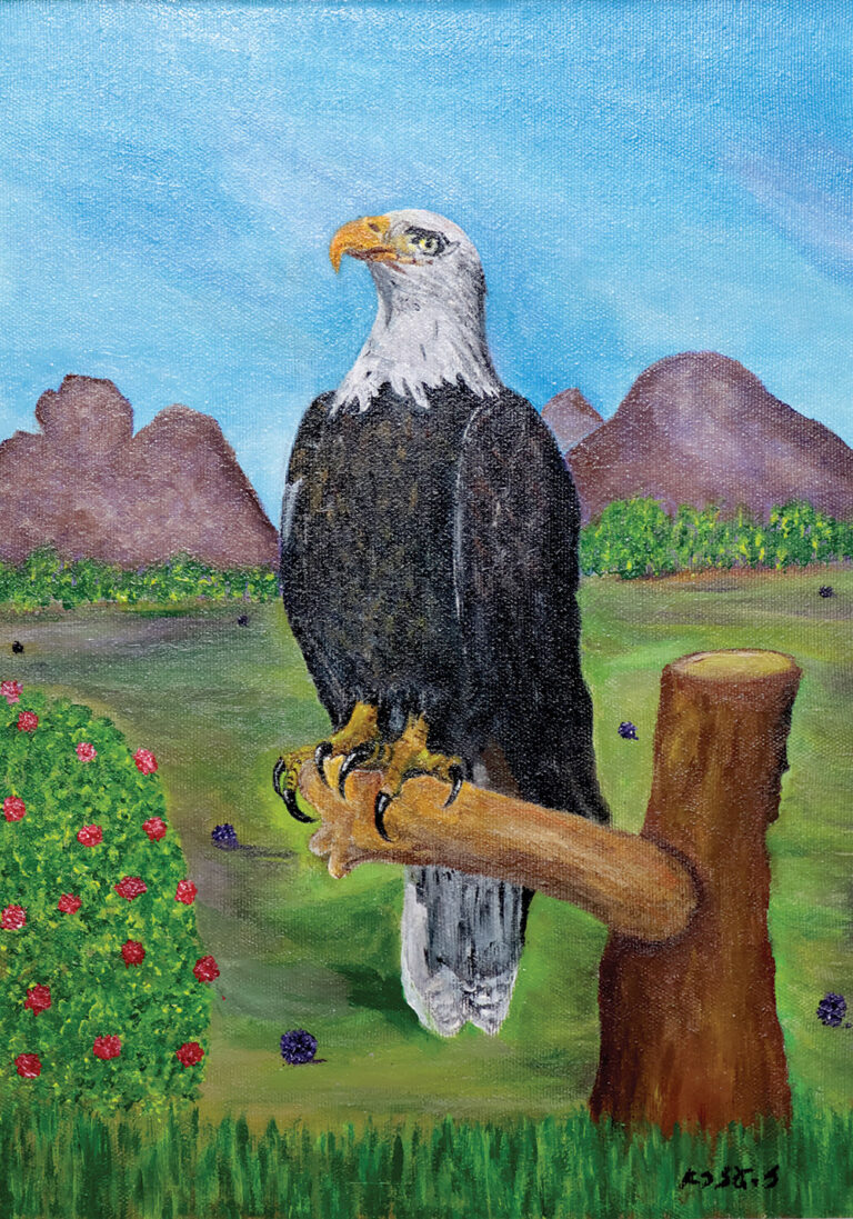 עיט — סמל אוניברסלי של רוח גבוהה, ראייה רחוקה ואומץ לב — עומד כאן בשקט מלא עוצמה, בין שמיים וארץ, כמו שומר על עולם הטבע כולו.